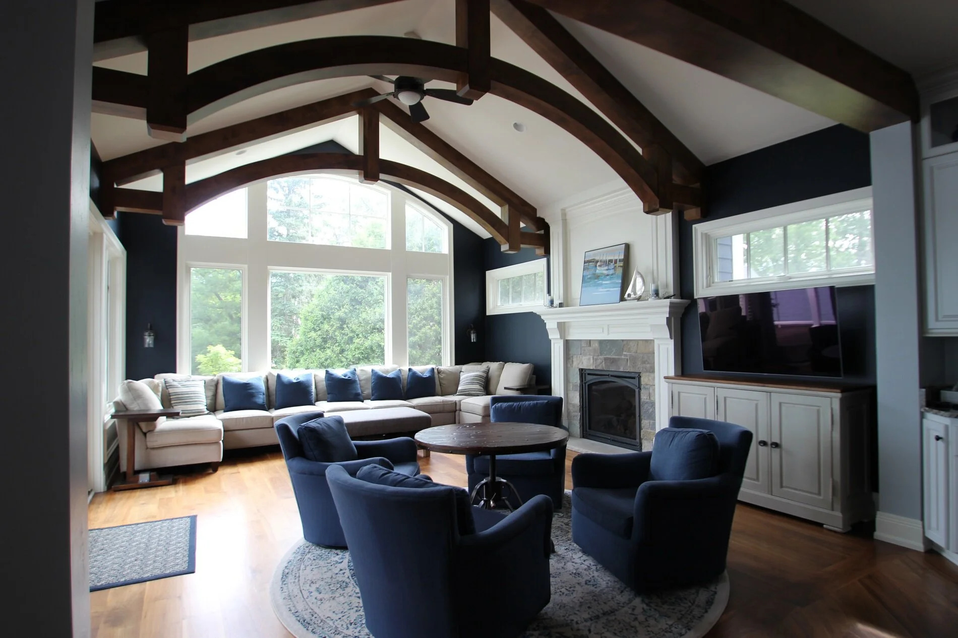 This luxurious lake home takes full advantage of the expansive water views this property has to offer. Perched up high on the hill, the view from the upper deck makes it feel like you’re on vacation every day of the year. White woodwork emits a lake house vibe, while the bold wood accents and timbers exude sophistication. There truly is no place like (this) home.