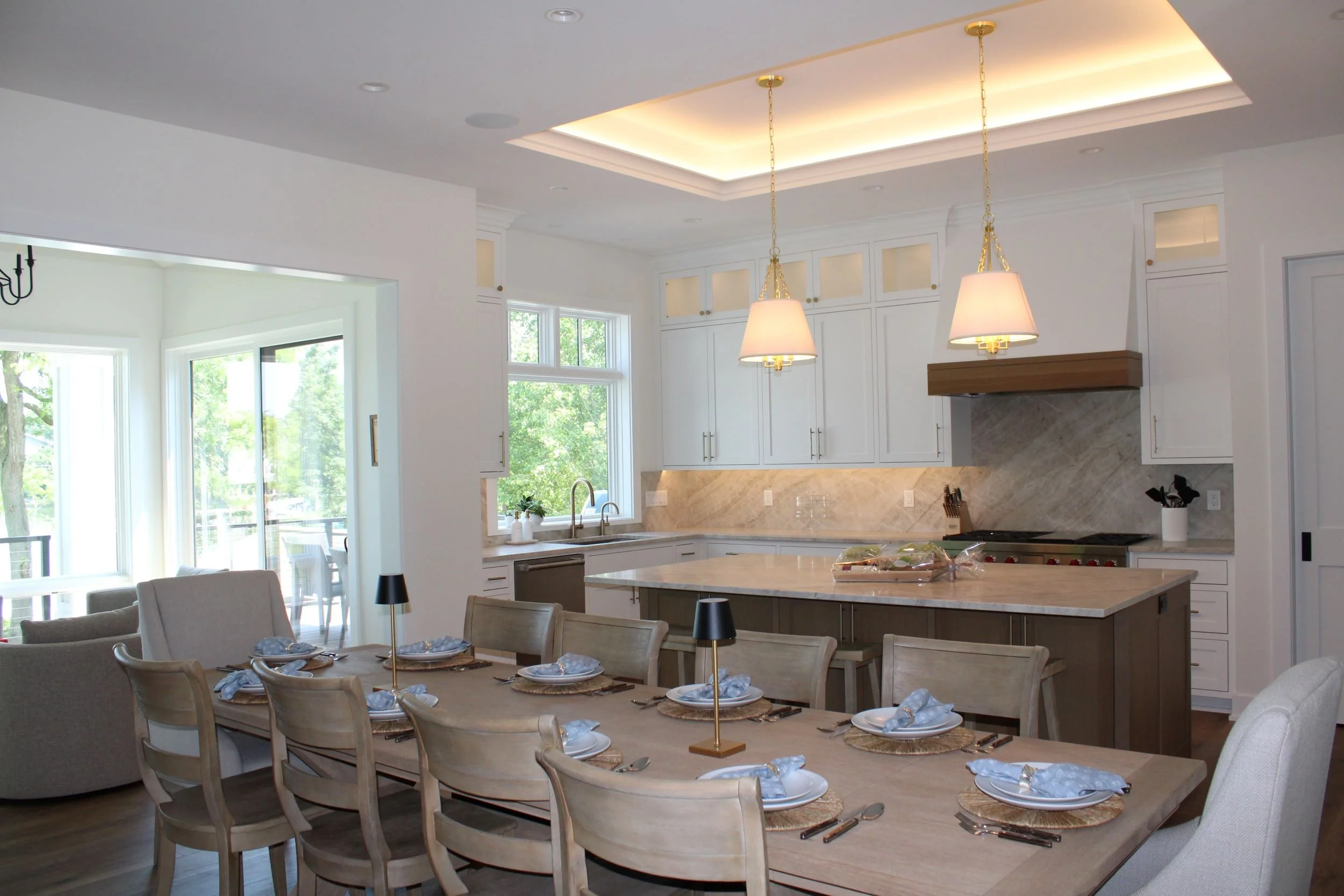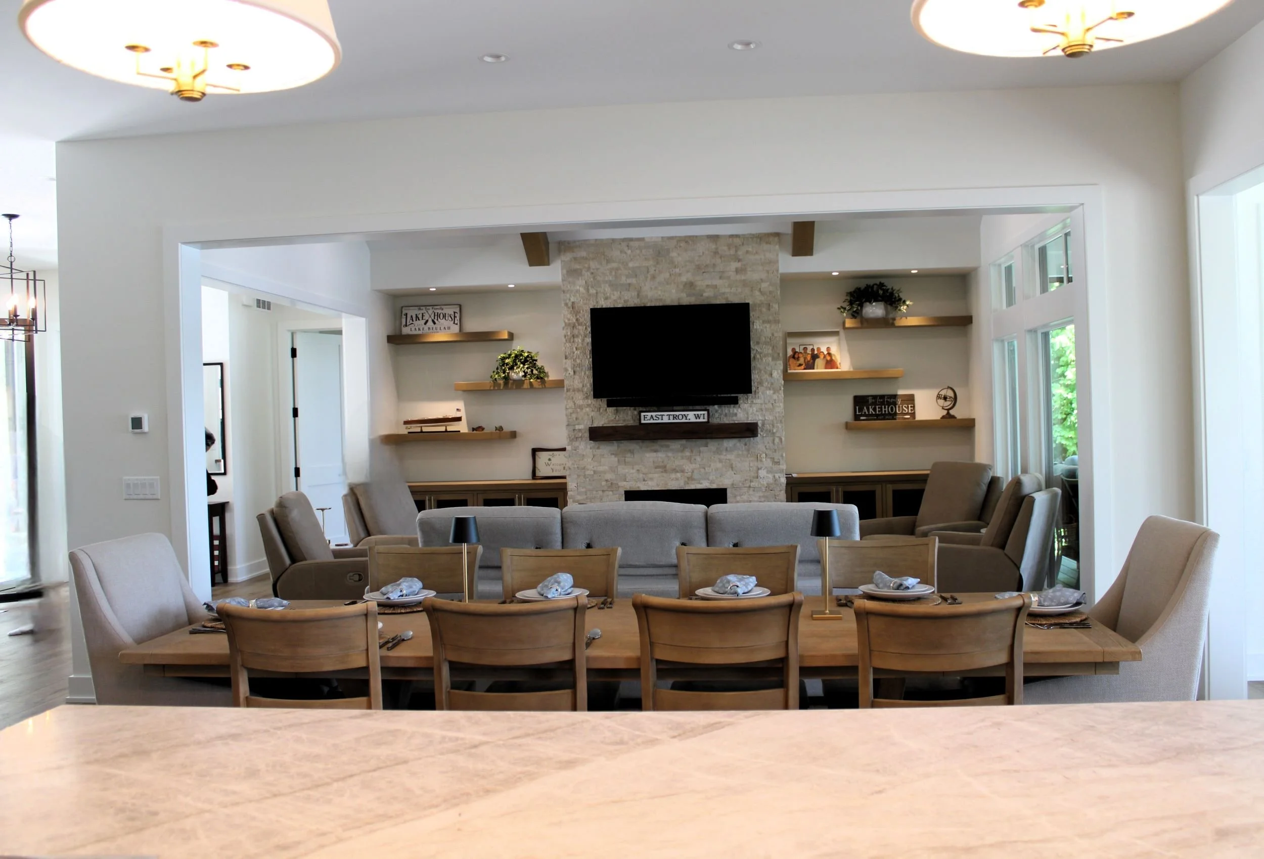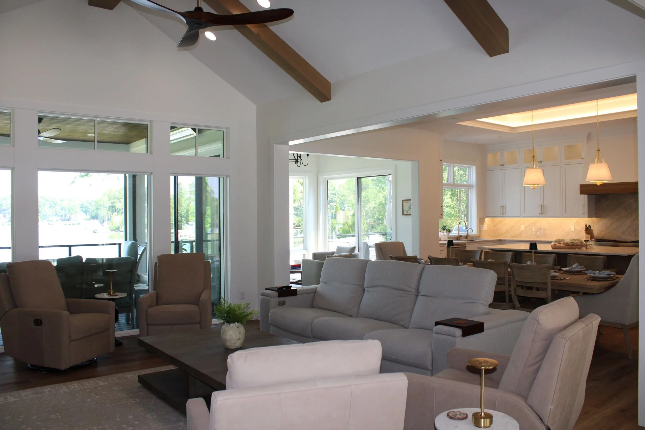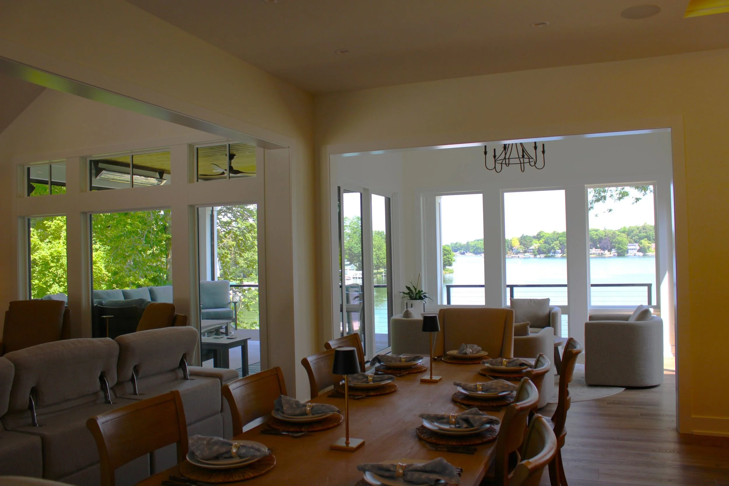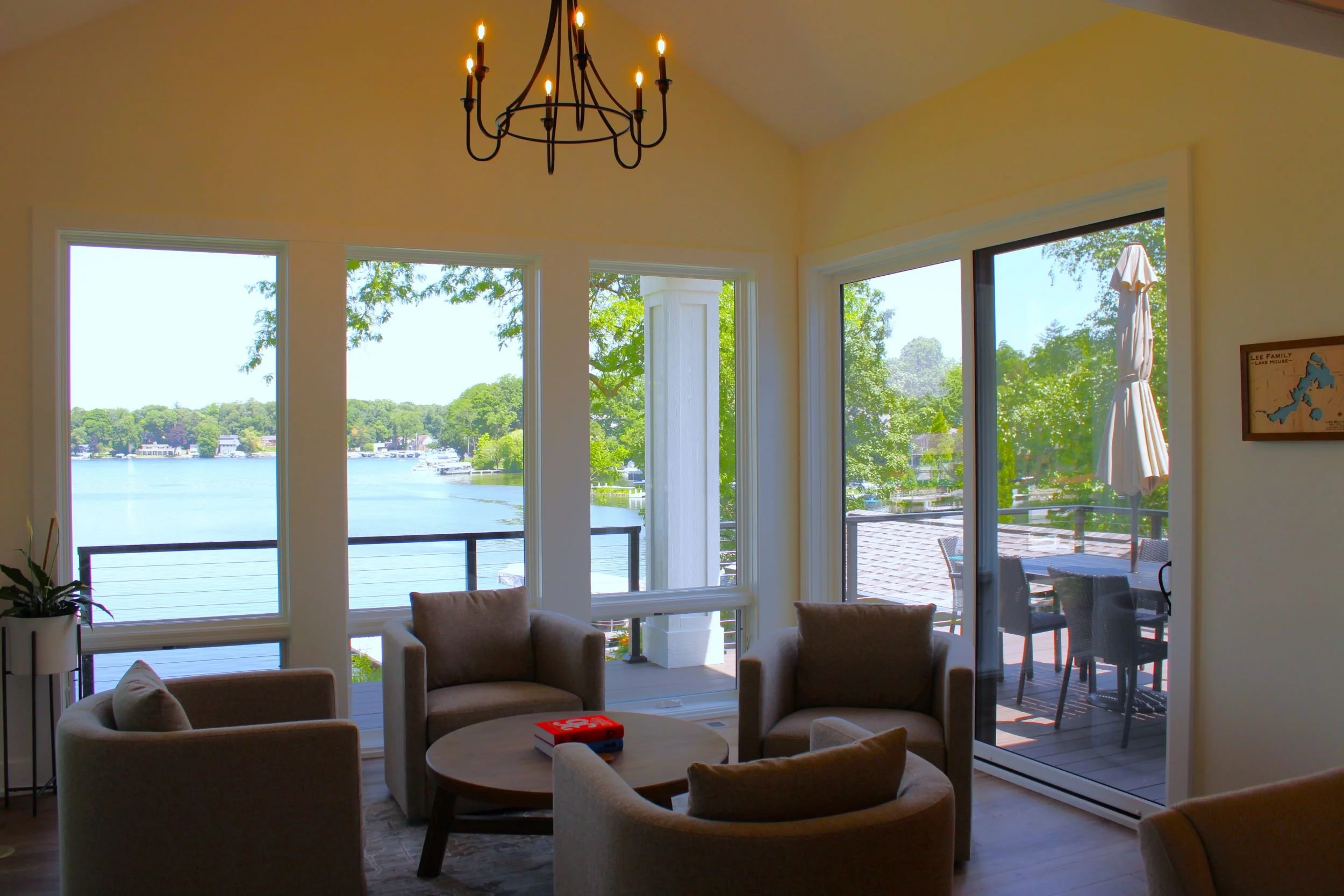This Cape Cod inspired home on Lake Beulah makes the most of its setting with expansive lake views from practically every room. The open layout of the main living areas allow free flow of movement, and maximizes natural light throughout the space.